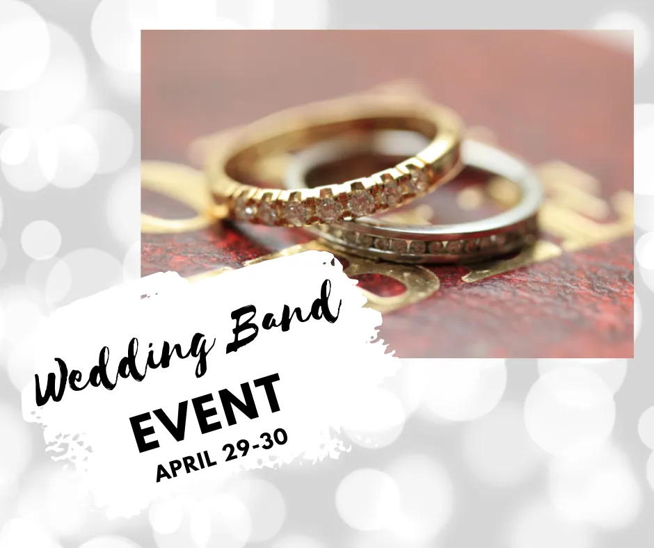Starting with our wedding band event on April 29-30th.  As you probably know by now 2022 is on trend to be the biggest year for wedding ever- and no time like the present to get his and her bands ordered and in your hand for your special day! We will have our sales staff ready and waiting to help you with any orders or customizations you may be interested in. Wedding bands in recent years have become a great way to even further personalize your wedding set. But bands are not just for weddings anymore! The stack is EVERYTHING- add one for special occasions, first (baby, house, jobs, moves,) or even just because it's Tuesday! Combining metals and textures is a great way to make it truly unique.