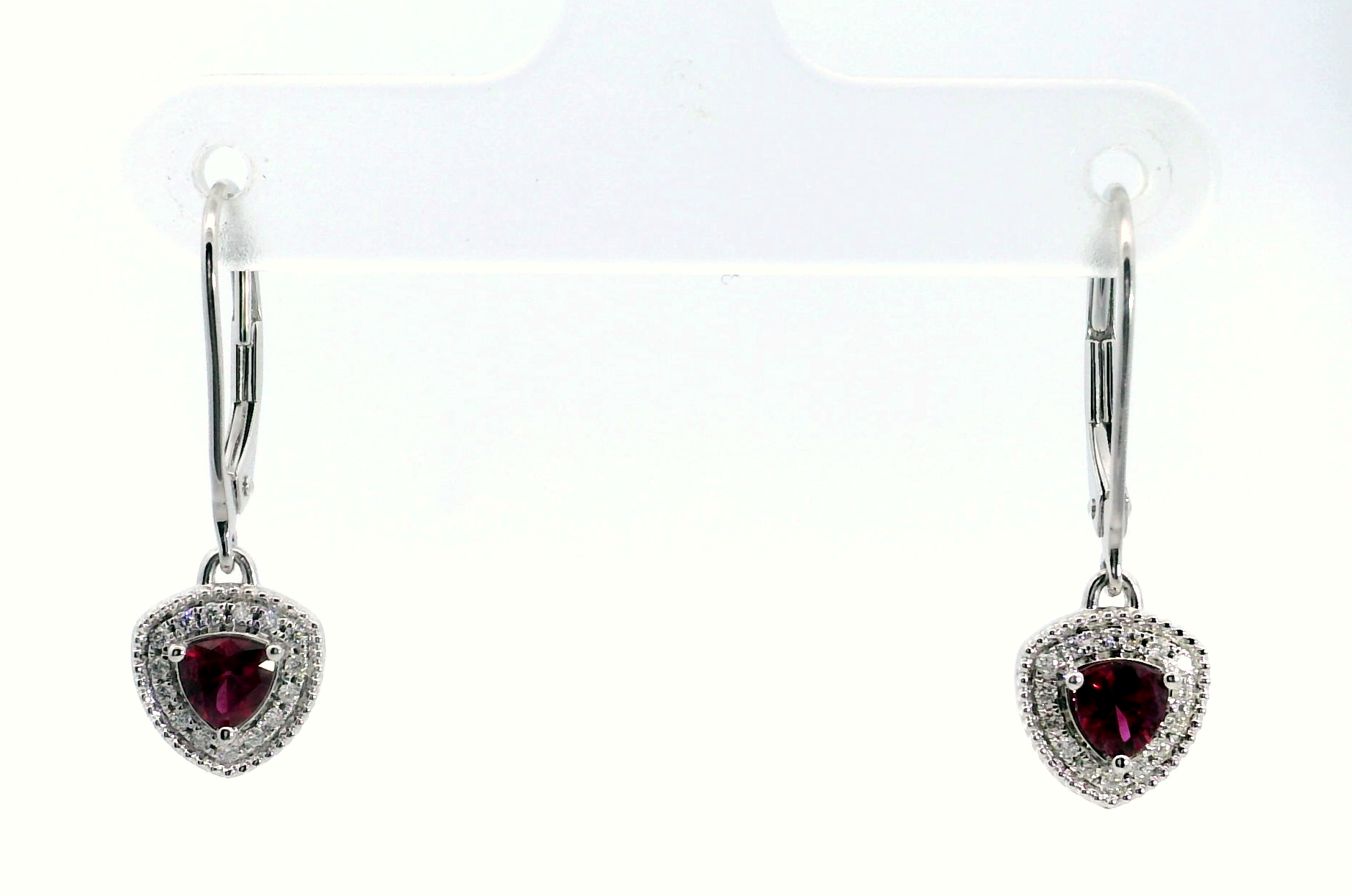 14K White Gold Trillion Ruby Diamond Drop Earrings