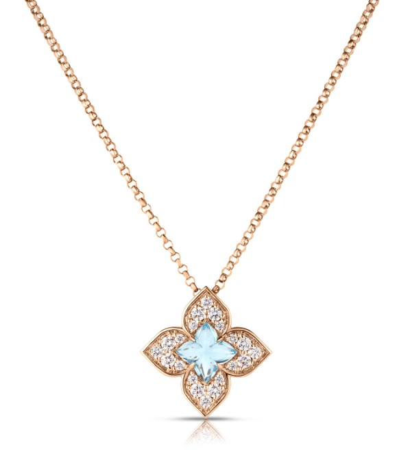 (541) 389-665518K Rose Gold Blue Topaz Diamond Venetian Princess Necklace