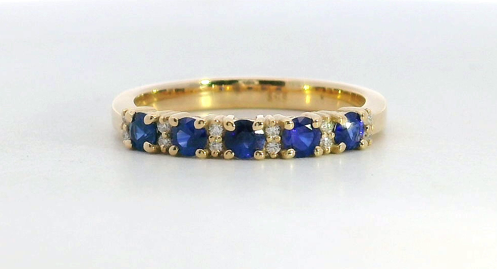 14K Yellow Gold Blue Sapphire Diamond Band