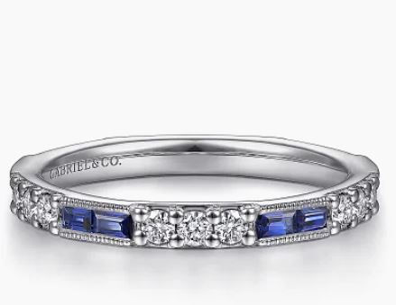 4. Gabriel & Co. 14 Karat White Gold Diamond Sapphire Baguette Stackable Ring