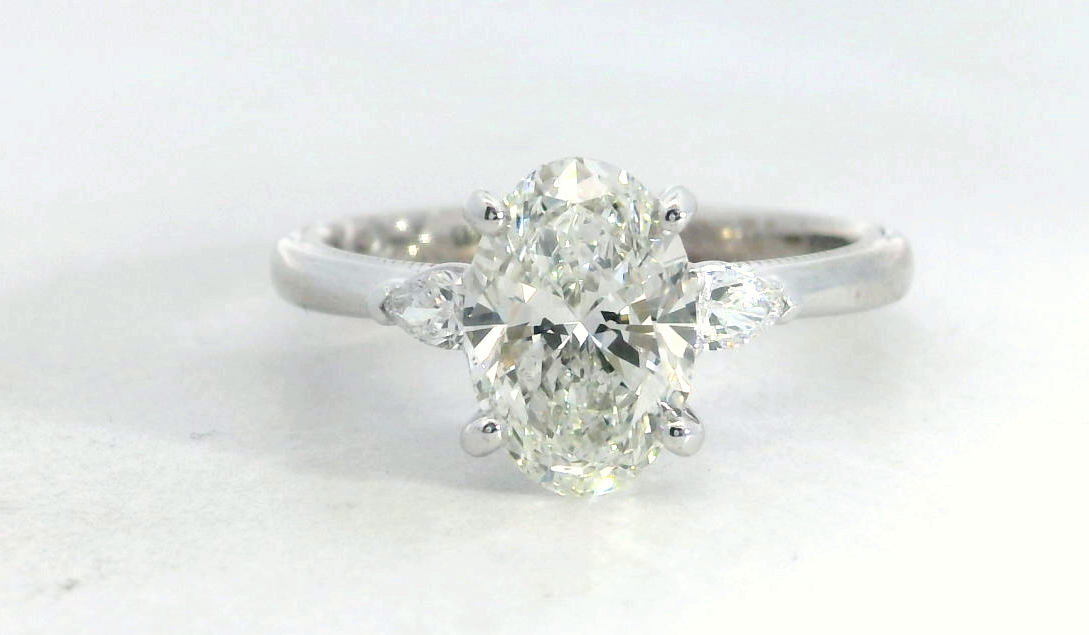 4. 18K WG Oval Diamond Three Stone Milgrain Edge Ring 1.50ct
