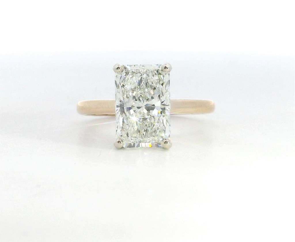 (541) 389-665518K YG/WG Lab Radiant Diamond Hidden Halo Ring 3.05ct