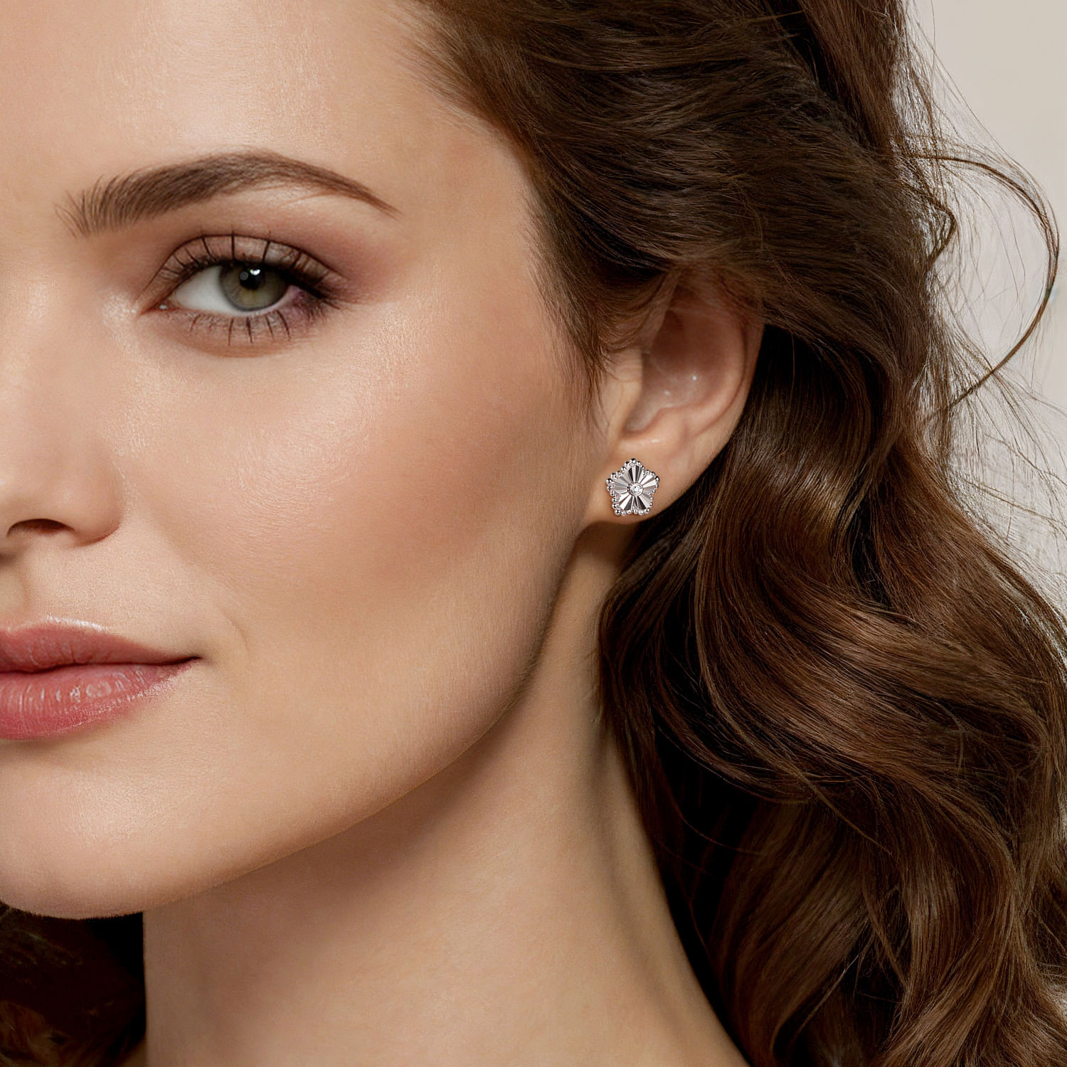 3. Gabriel & Co. Sterling Silver Diamond Bujukan Frame Flower Stud Earrings