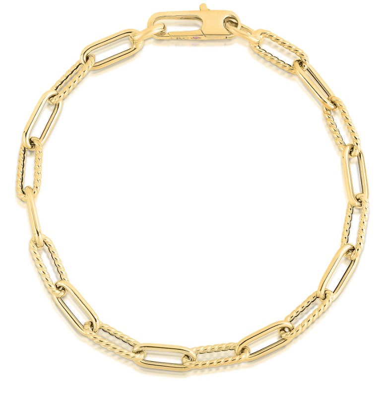 Roberto Coin. 18 Karat Yellow Gold Oval Link Bracelet Textured/ Polished Saxons Fine Jewelers Bend, OR