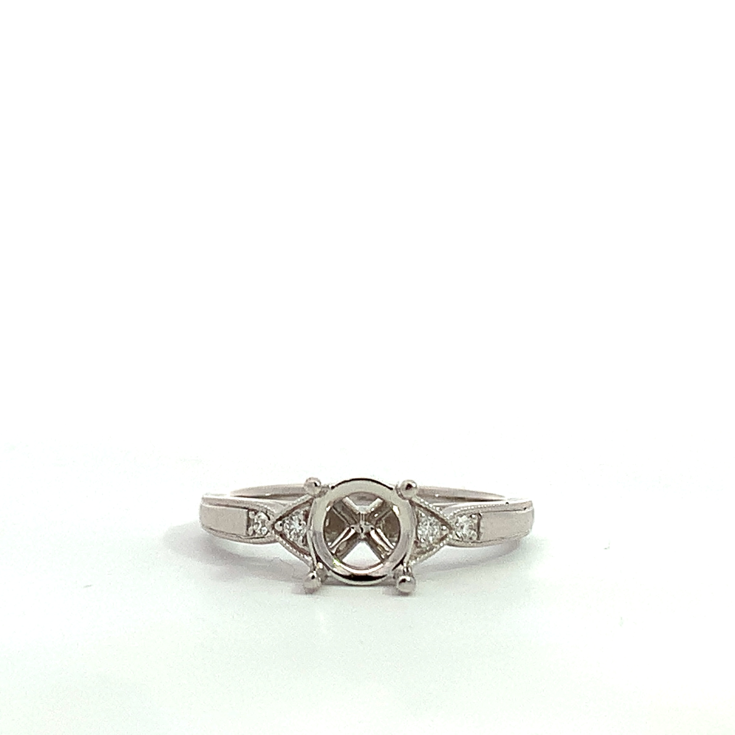 4. 14 Karat White Gold Diamond Milgrain Semi-Mount Ring